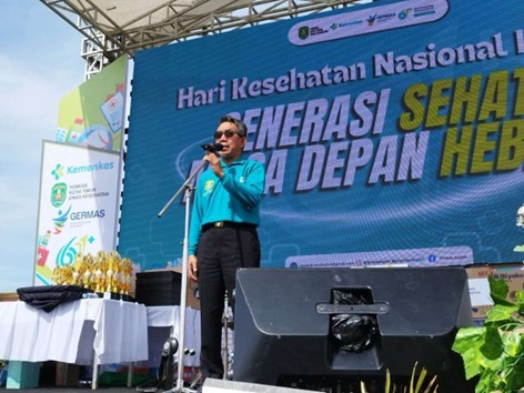 kader posyandu, dan masyarakat umum, dilanjutkan dengan Gerakan Minum Susu yang masif sebagai bagian dari kampanye peningkatan gizi anak dan remaja di Kutim. Tak hanya itu, layanan kesehatan gratis menjadi magnet utama, mencakup pemeriksaan umum, skrining oleh dokter spesialis anak dan spesialis penyakit dalam, layanan donor darah, serta edukasi kesehatan gigi dari Persatuan Dokter Gigi Indonesia (PDGI). Dalam kesempatan tersebut, Bupati Ardiansyah Sulaiman juga secara simbolis menyerahkan dua dokumen penting: Sertifikat Laik Higiene Sanitasi (SLHS) kepada tiga Sentra Pengolahan Pangan sebagai jaminan keamanan produk konsumsi, serta paket Alat Antropometri kepada satuan pendidikan TK, KB, dan PAUD untuk memperkuat deteksi dini gizi anak dan penanganan stunting. Secara keseluruhan, Plt Kepala Dinas Kesehatan Sumarno berharap momentum HKN ini mampu menumbuhkan semangat kolektif untuk membudayakan Perilaku Hidup Bersih dan Sehat (PHBS) serta Gerakan Masyarakat Hidup Sehat (GERMAS) mulai dari rumah hingga lingkungan kerja, sebagai fondasi terwujudnya Kutai Timur yang sehat dan berdaya. (Adv)
